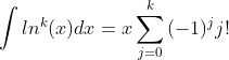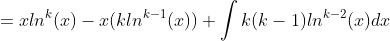 When we take this same approach to the antiderivative of ln^k (x) we begin to see a pattern which yields a simplified integral equation: