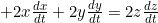 Now, IMPLICITLY differentiate with respect to time t. Related rates problems will always be differentiated with respect to time because the way things change is some measurement (distance, volume, etc..) over time t (seconds, minutes, etc.). This yields the following: