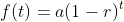 Exponential decay/depreciation per time period 't' by a percentage 'r' and an initial amount 'a' is given by the function 'f', where f(t)=a*(1-r)^t. That is: